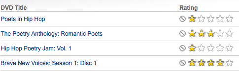 I probably wouldn’t recommend ordering any of these from netflix, but when pressed, I’d suggest the brave new voices series. I’ll be working my way though the netflix selections on poetry and I’ll keep you posted as to what I find. hopefully I’ll have an awesome recommendation for you, but not yet.